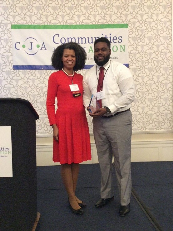 This is a membership nominated award where CJA members recognize a leader who has broad influence on theory, policy, and/or practice addressing health disparities and improving health outcomes. The awardee can be a CJA member or non-member. The award recipient will be invited to share their experience with the national membership on a webinar with a goal of increasing community level influence. The purpose of this award is to demonstrate the power of community level impact and dedication to social justice through the use of data, cultural competency, governance, and leadership.