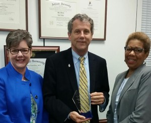 CJA Board Chair Judith Warren and Jan Ruma present The Honorable Sherrod Brown with the Congressional Community Health Hero Award.