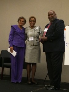 Board Chair Judith Warren and Marilyn Hughes Gaston present Dr. Arthur James with the Marilyn Hughes Gaston Health Equity award.